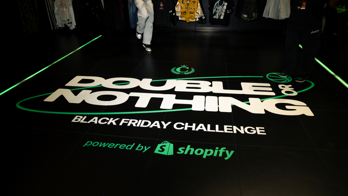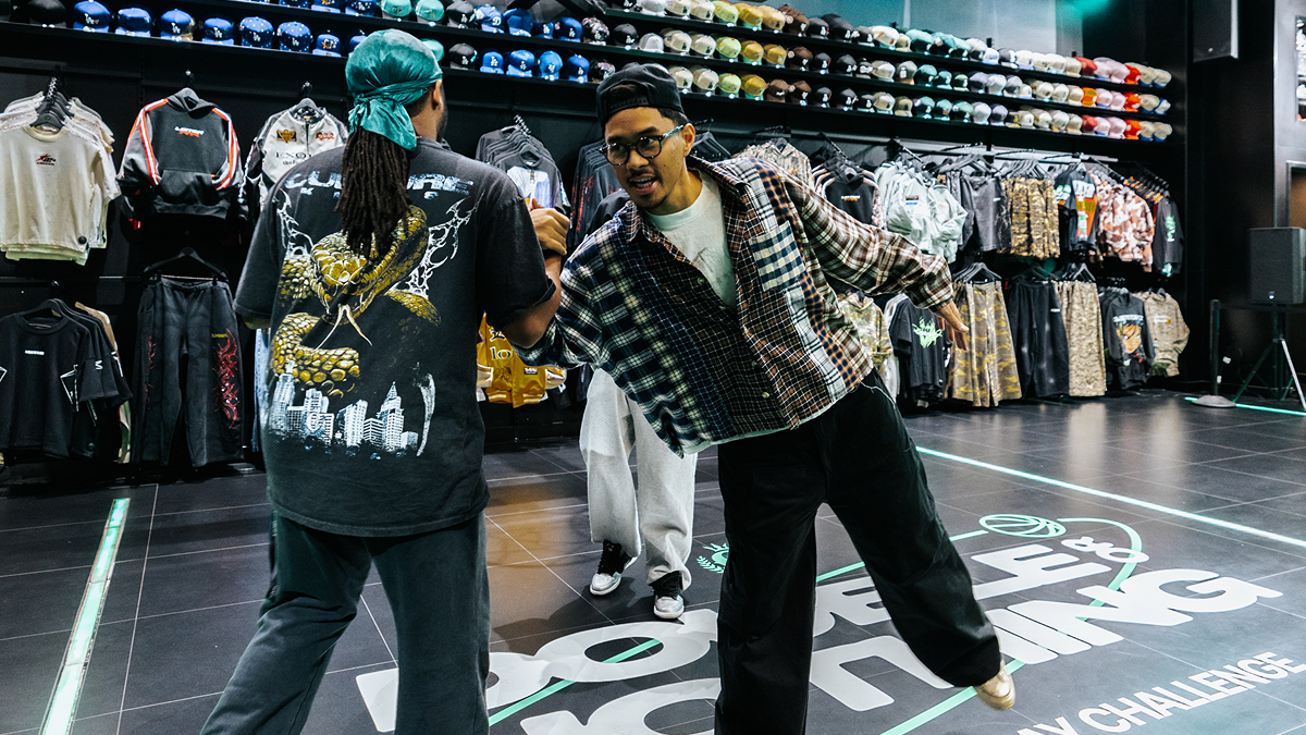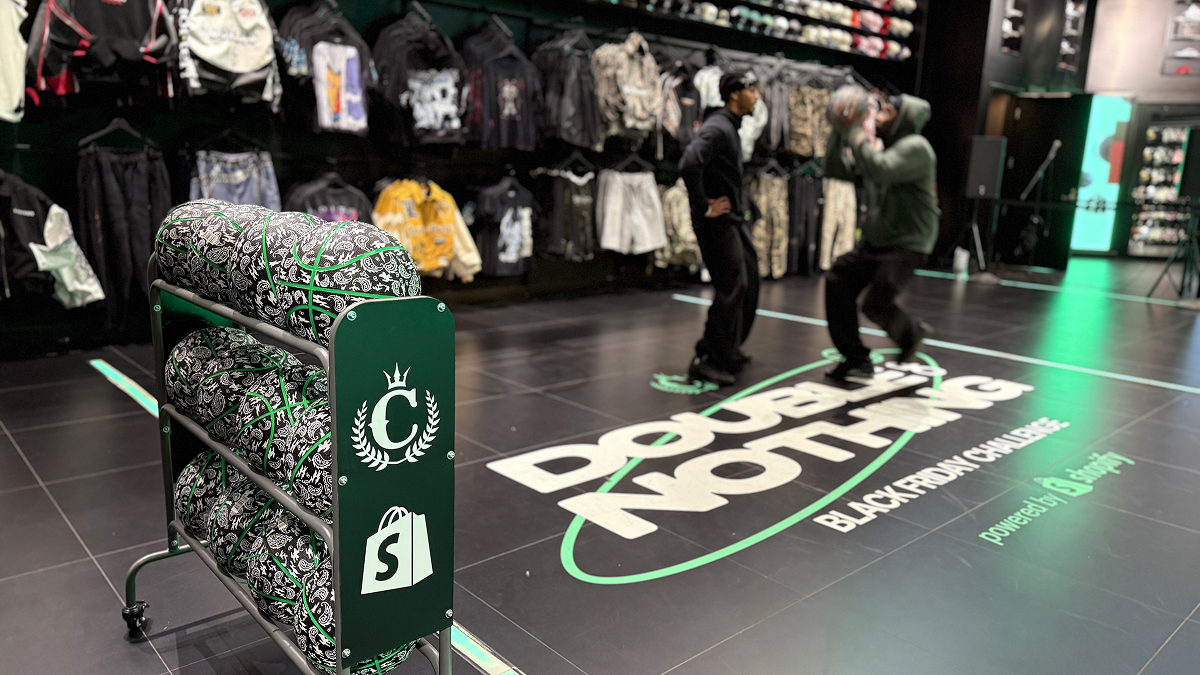 Once a game started, the customer’s name would flash on the large scoreboards, while a Culture Kings staff member grabbed the mic to MC the event and invited everyone in the store to gather around and watch the challenge. Each participant got a few practice shots, and once they made their first basket, they won $4. At that point, they could choose to walk away and keep their credit, or risk it all for a chance to double it. Most of the time, customers chose to go for double.